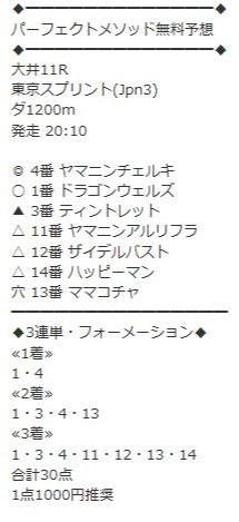 15日(水)のJpn3東京スプリントの無料予想で