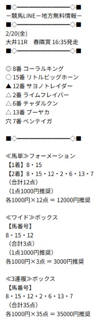 14日(水)の地方競馬無料予想で