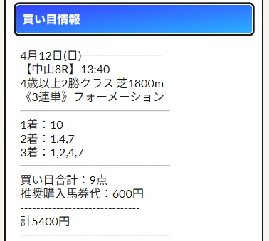 こういうのを見ると、やっぱり森山誠一プランは「当てた」より「どう当てたか」が強いです。人気サイドの軸で安心感を残しながら、最後は17番人気までちゃんと拾って、配当総額は69万4080円。未勝利戦って、上位人気だけで固めると案外伸びないのに、森山誠一プランはそこを分かったうえで配当になる形を作ってるんですよね。自分は競馬好きなので、こういう“穴を入れる場所のうまさ”を見ると素直に唸ります。変に夢だけ見せるんじゃなく、買い目のセンスで納得させてくる情報でした。