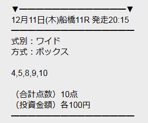 10頭立てのレースで大穴馬2頭を拾いワイド3種完全的中!