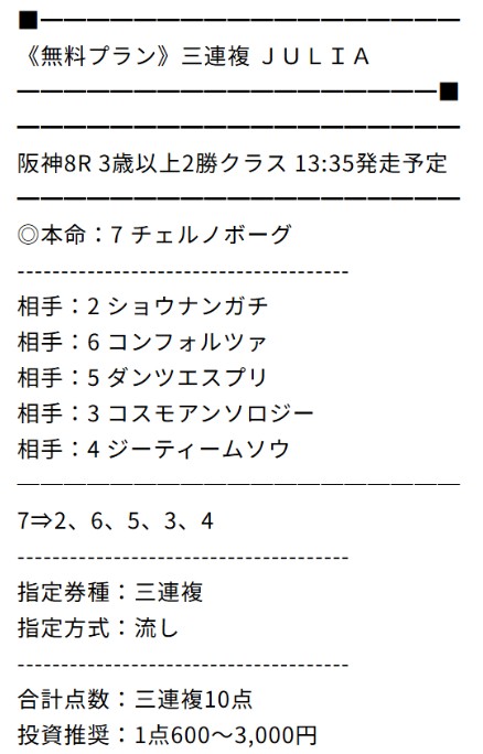12月7日(日)の無料予想阪神8Rで13万2600円を獲得!