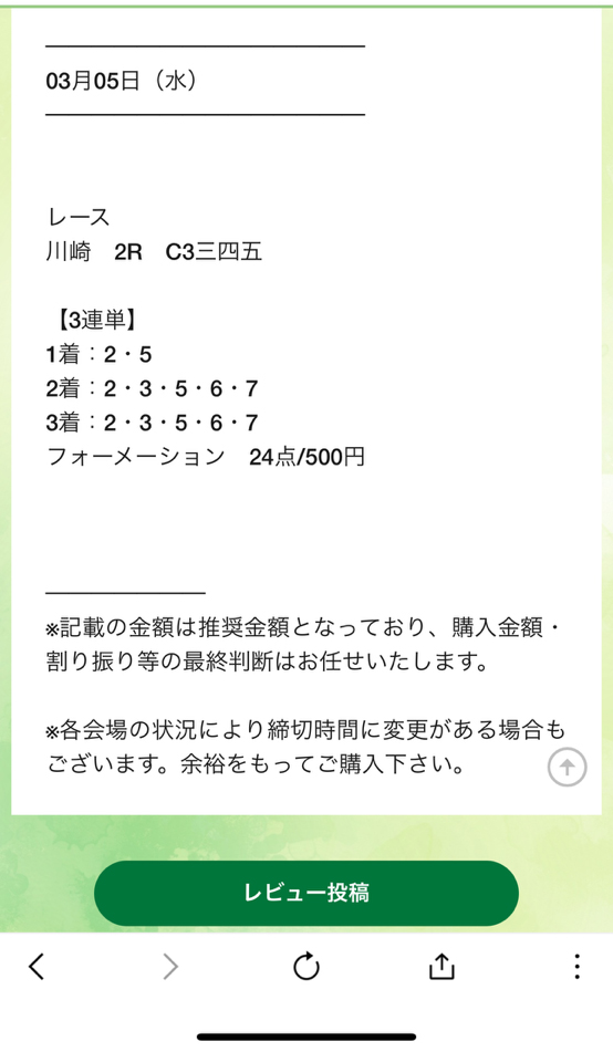 あさイチからオススメされた無料予想の買い目獲ってたので