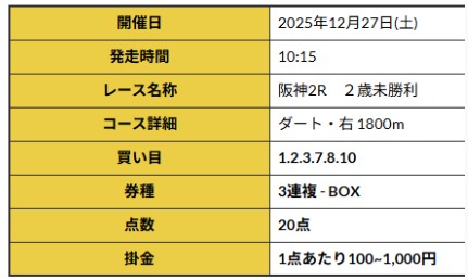 提供された2日分の買い目を口コミ連投するので確認して下さい。
