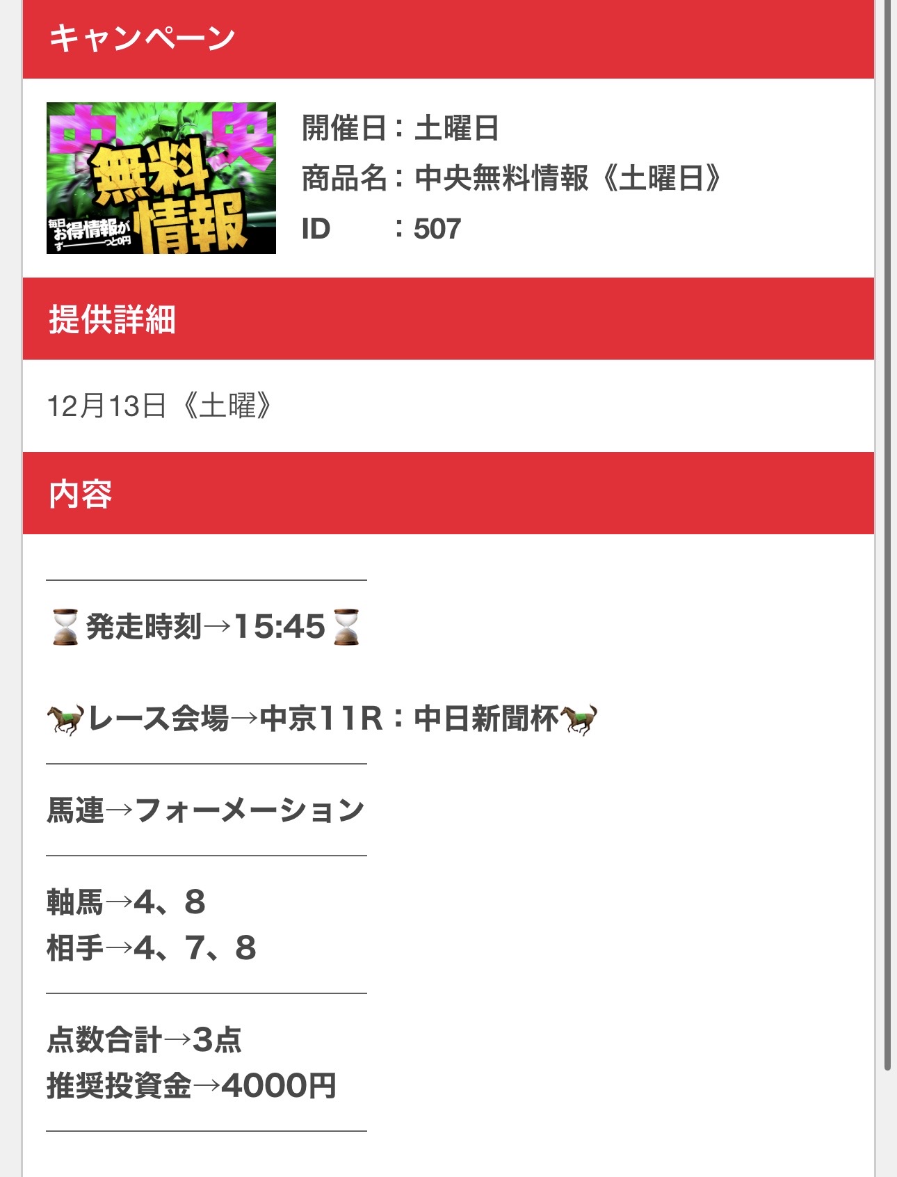 11月11日(火)の地方無料予想では1万2800円的中!