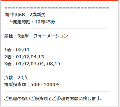 指示は馬連5点だったんだけどついでに1頭軸で三連複も買った結果