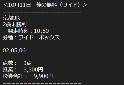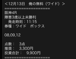 18日(土)の無料予想では買い目点数1点で見事的中!